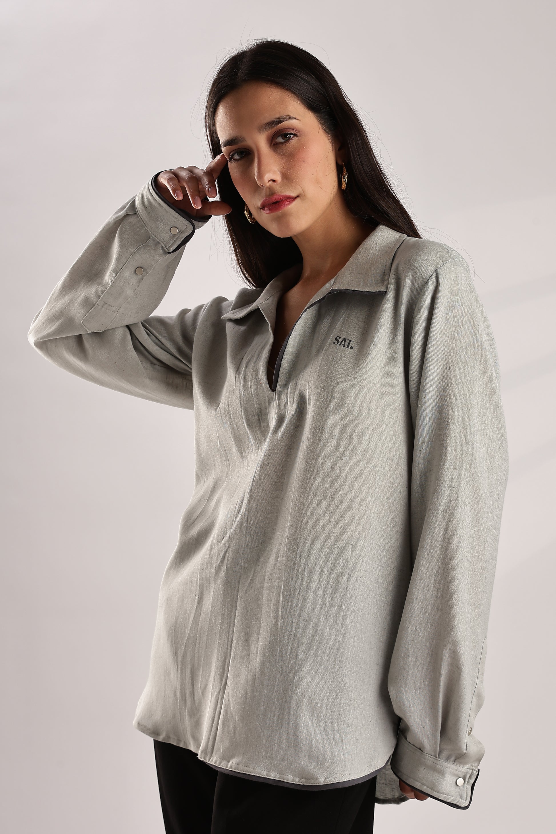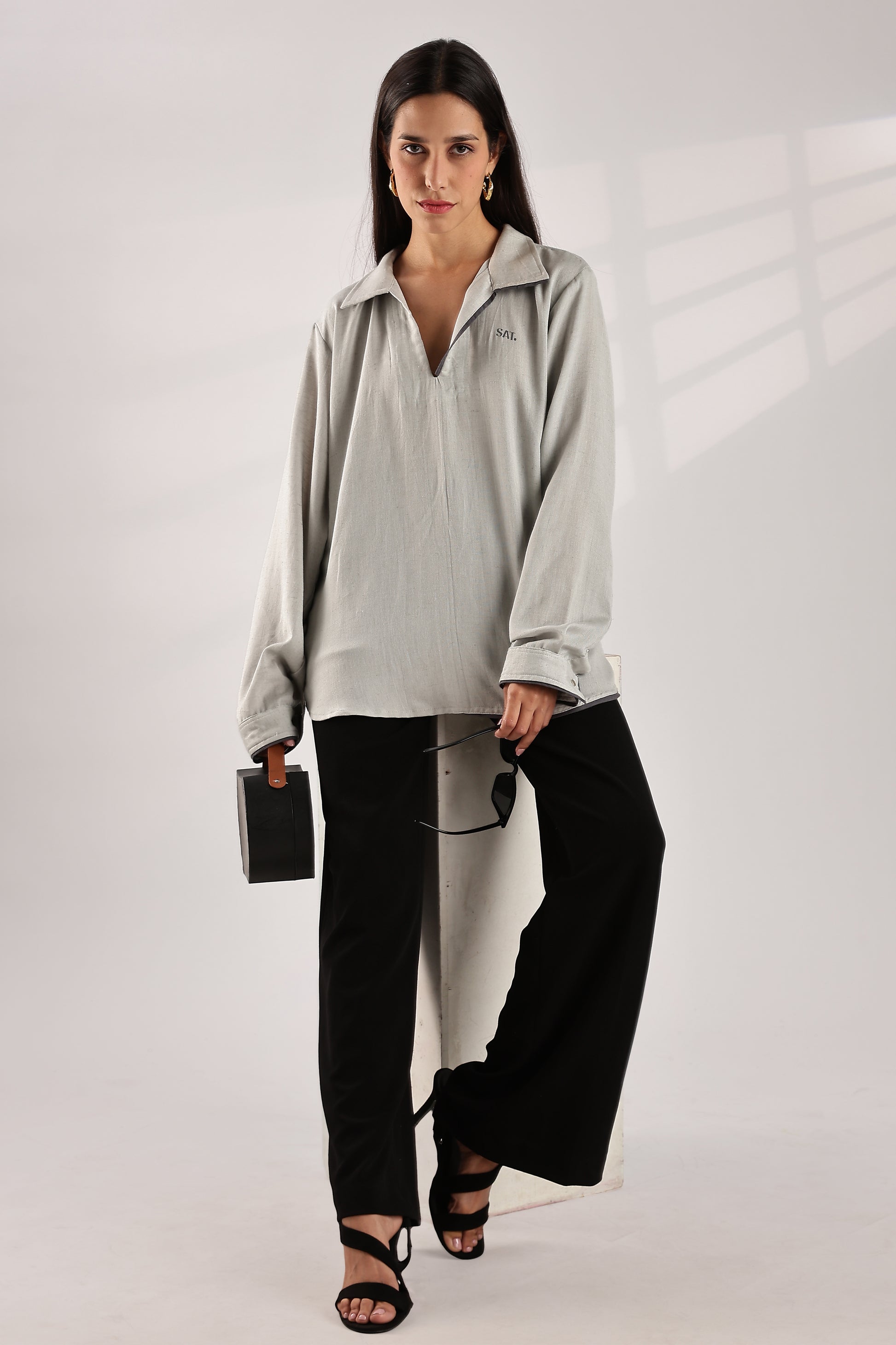 An elevated essential from Superior Apparel Technology’s S/S 2025 collection, the Flowy V Neck Shirt 'Light Grey' is crafted for effortless elegance and flow. A timeless silhouette reimagined with modern fabric and form.