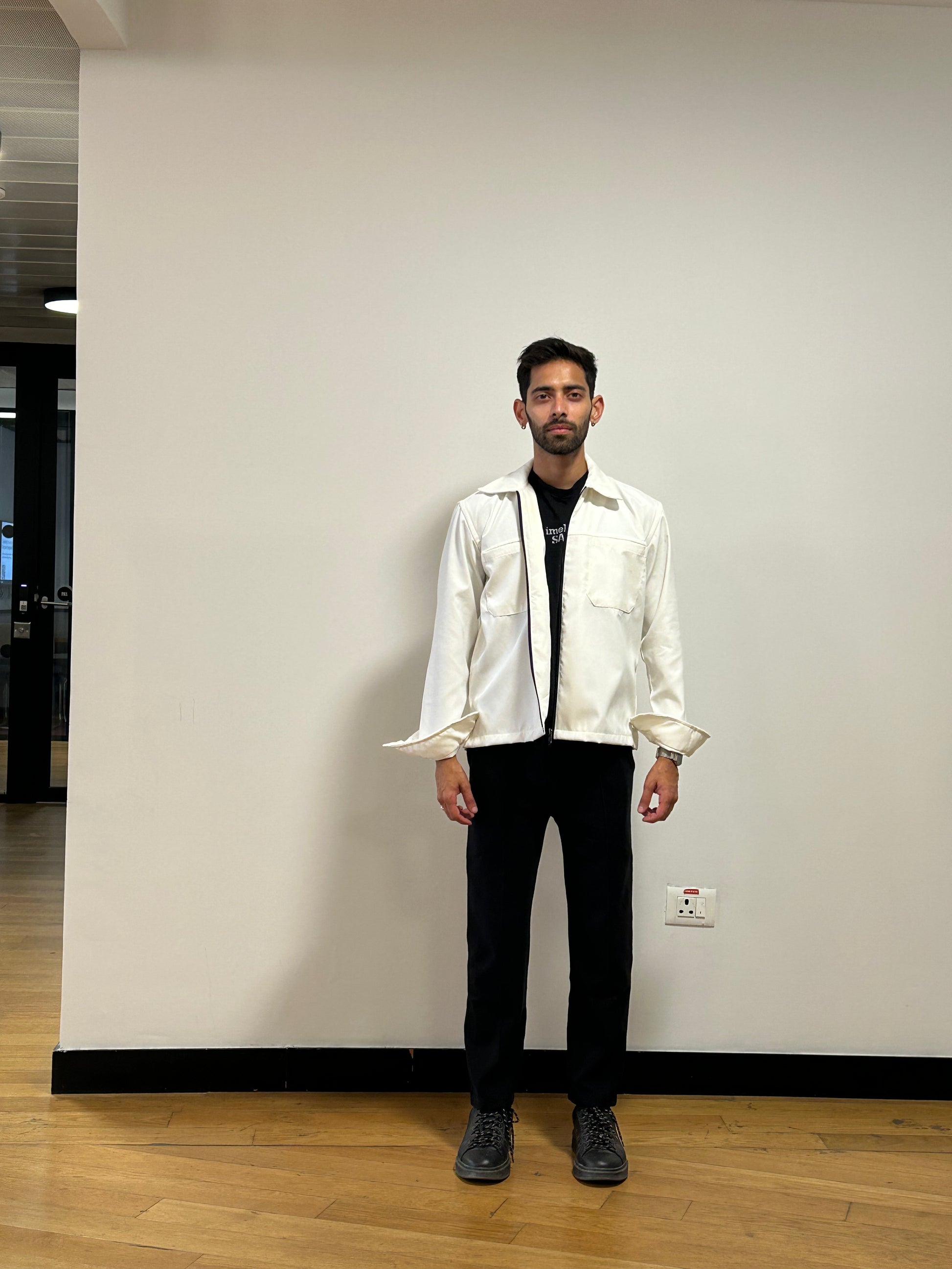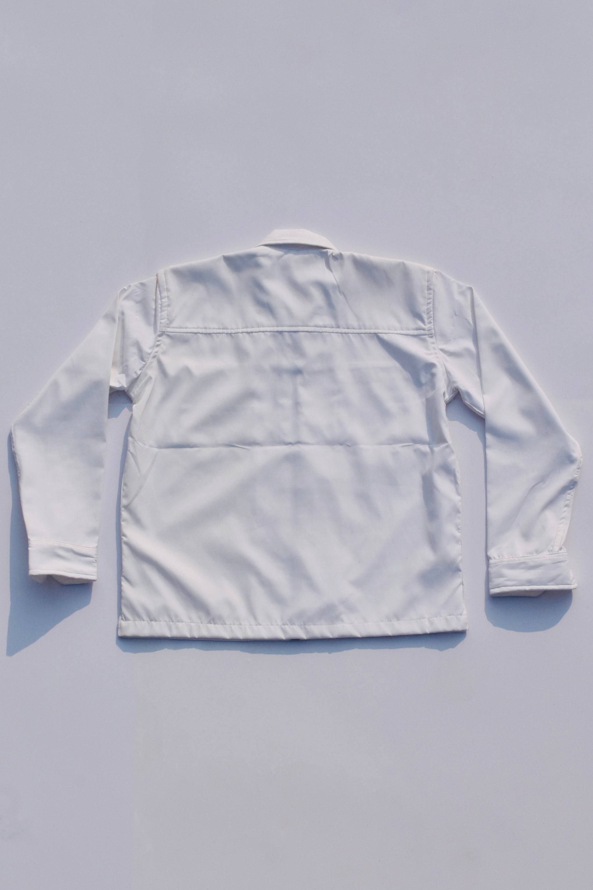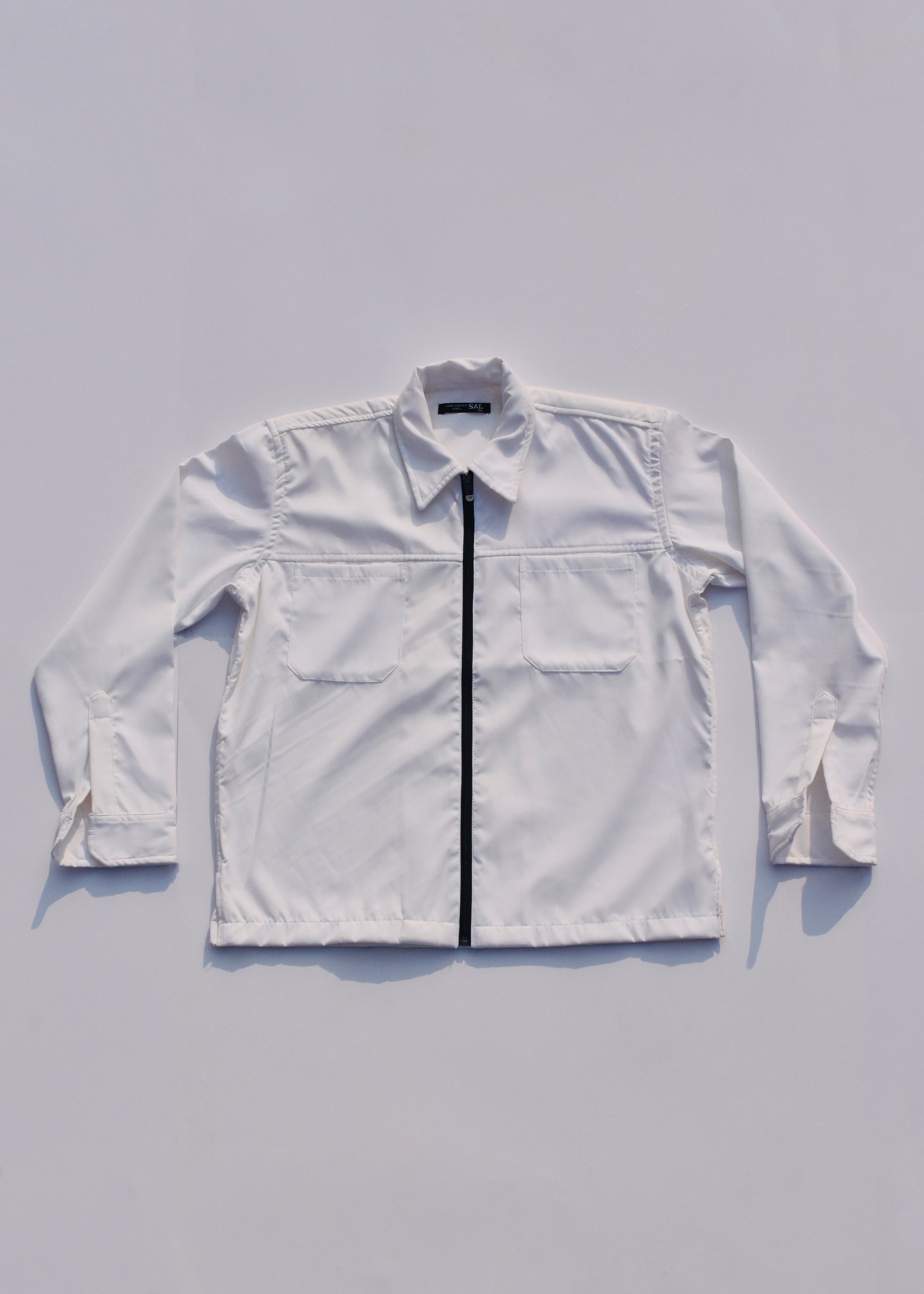 White unisex jacket crafted from micronised recycled polyester, designed to withstand all weather conditions. Its minimalist yet modern aesthetic makes it versatile for any occasion, while its sustainable materials showcase a commitment to eco-conscious fashion.