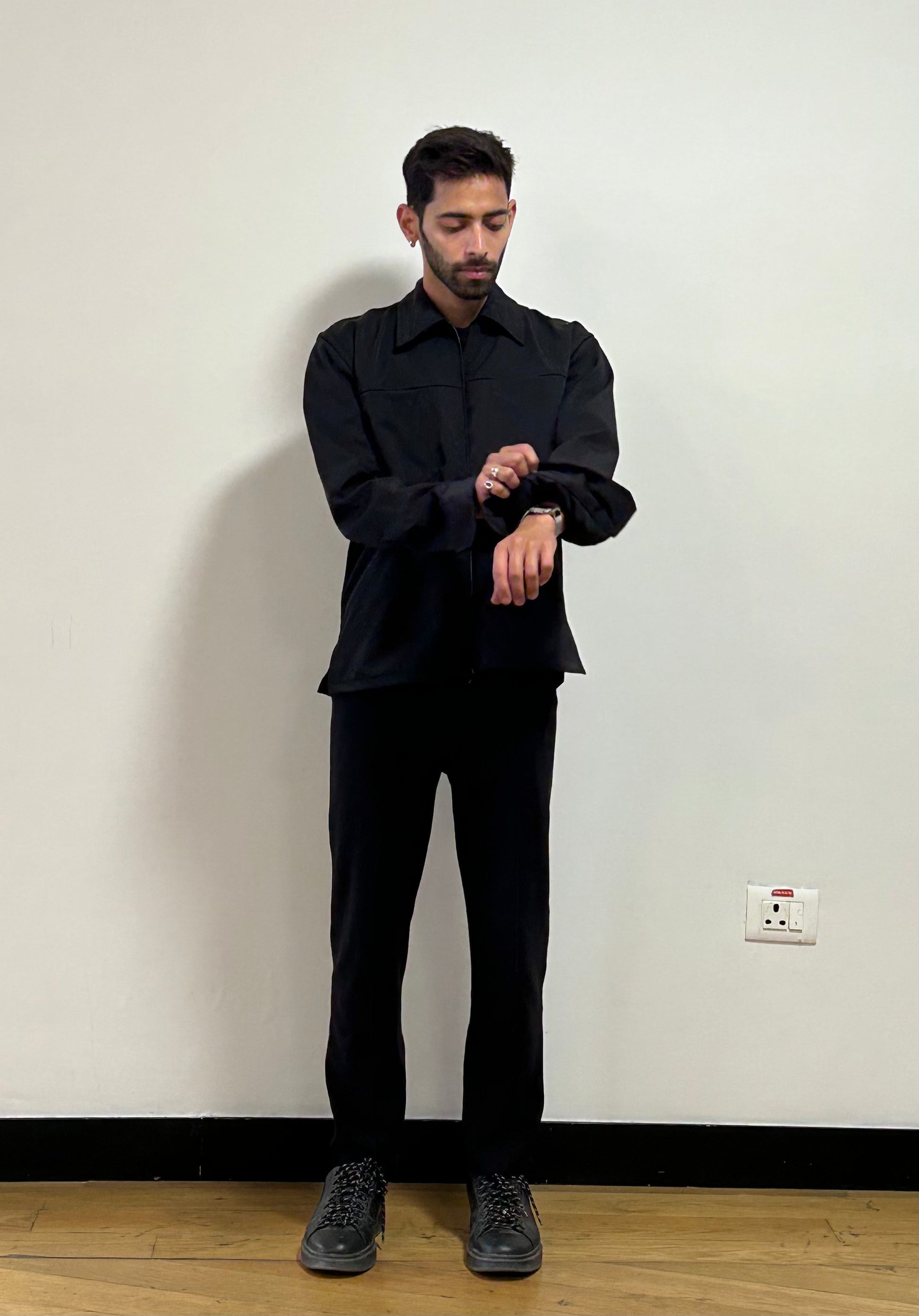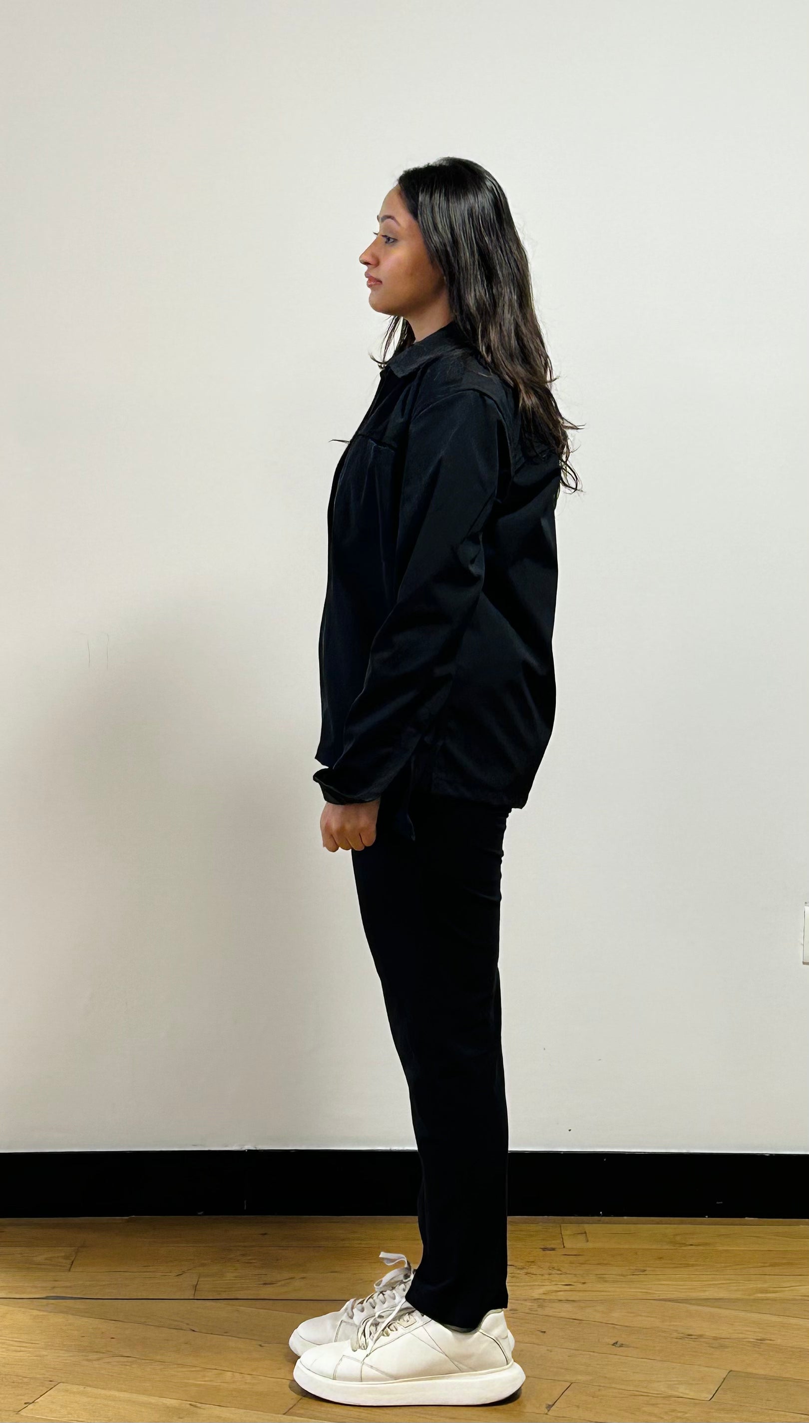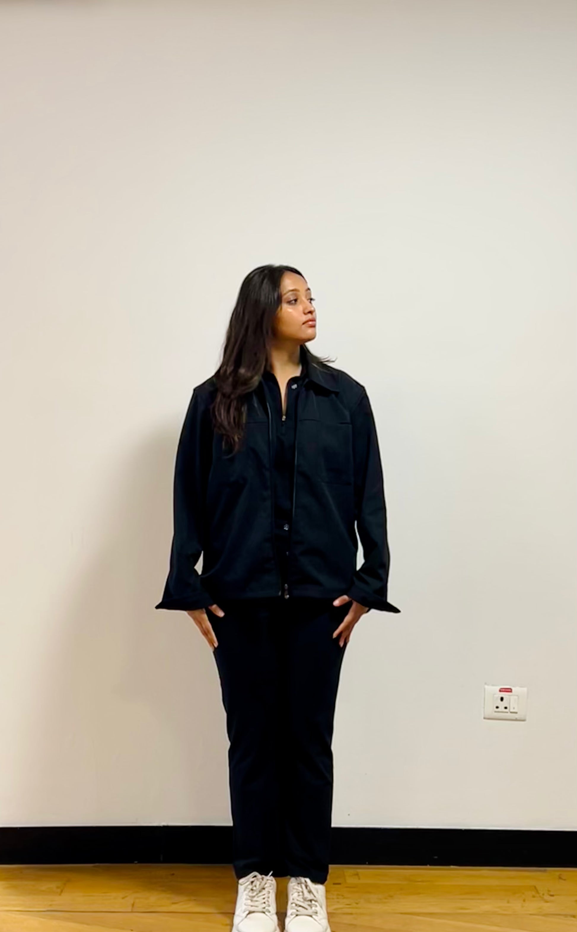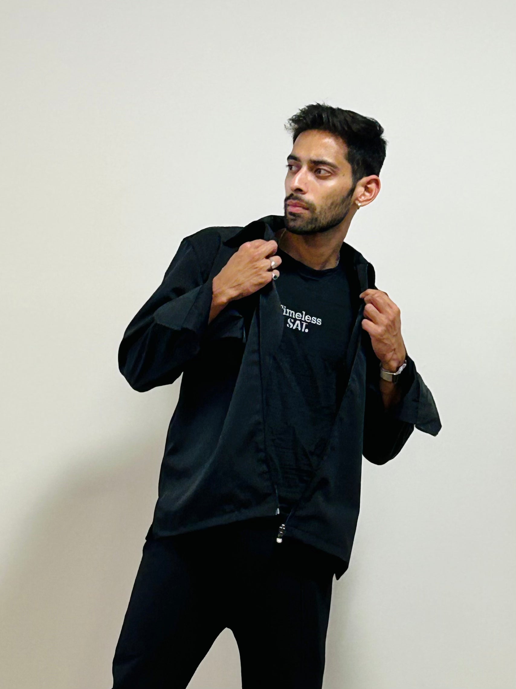 This solid black jacket offers a sleek and stylish look with a design that emphasizes both confidence and versatility. Crafted from high-quality micronized recycled polyester fabric, it has a soft yet durable texture that feels comfortable against the skin. The jacket’s unisex design allows it to be worn by anyone, and its confident fit means it contours to your body without being restrictive, ensuring ease of movement.