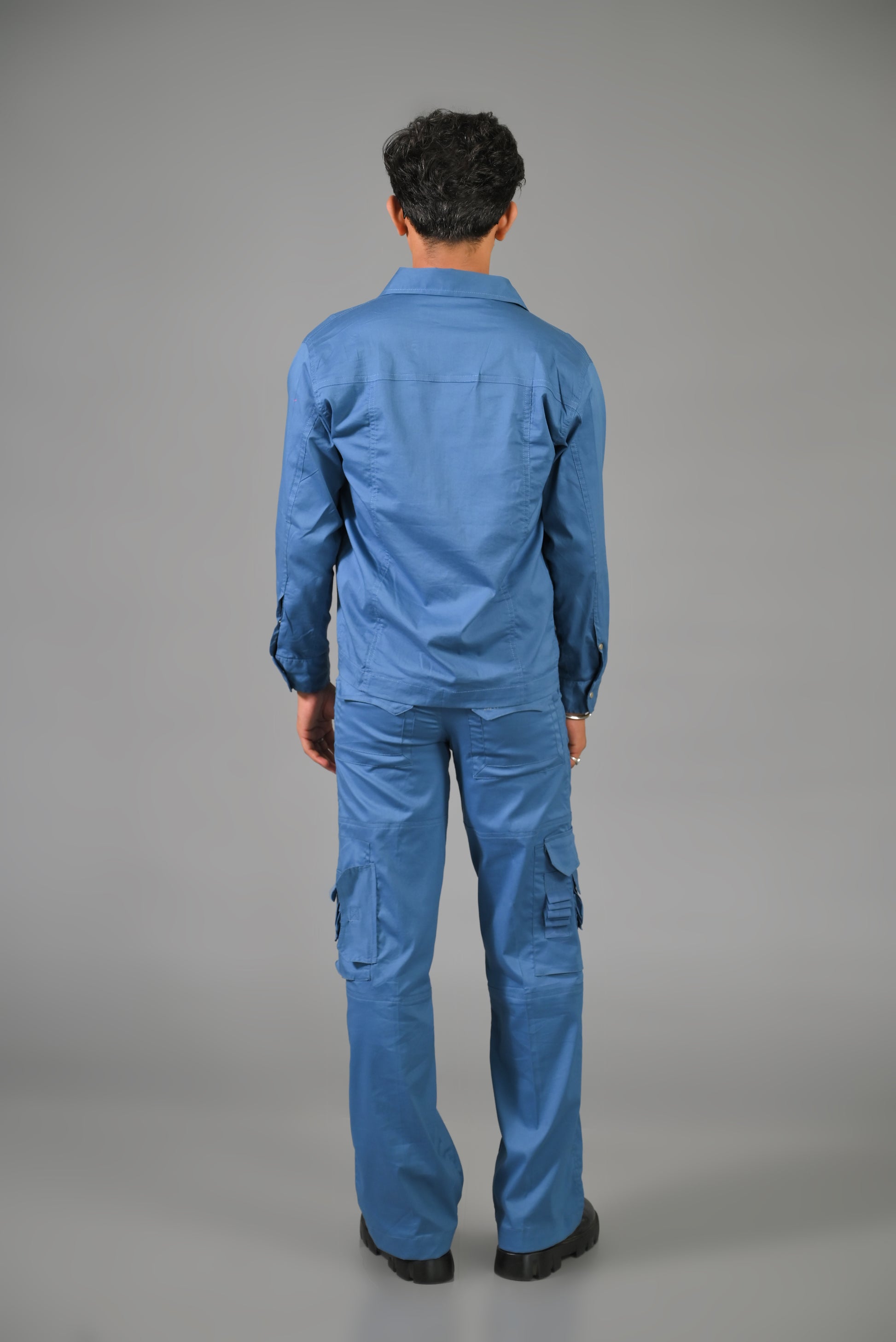 Superior Apparel Technology Co-ord Set: Water Blue Zip Jacket & Wide-Leg Cargo Pants